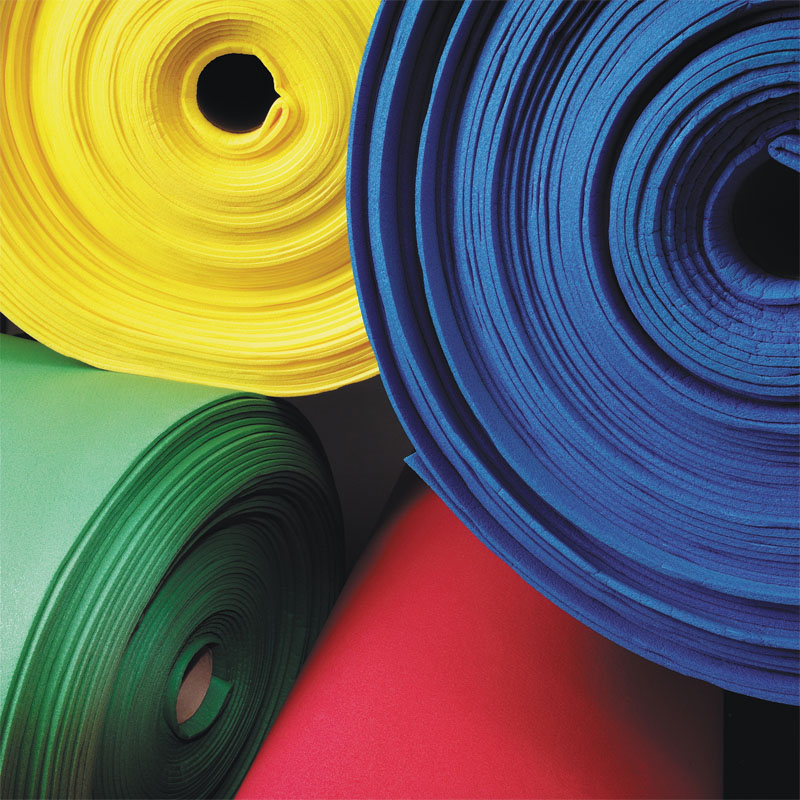 FOAMEX se fabrica en rango de densidades de 25kg/mᶾ hasta 200kg/mᶟ en rollos o planchas en diferentes espesores, colores y con retardantes a fuego.